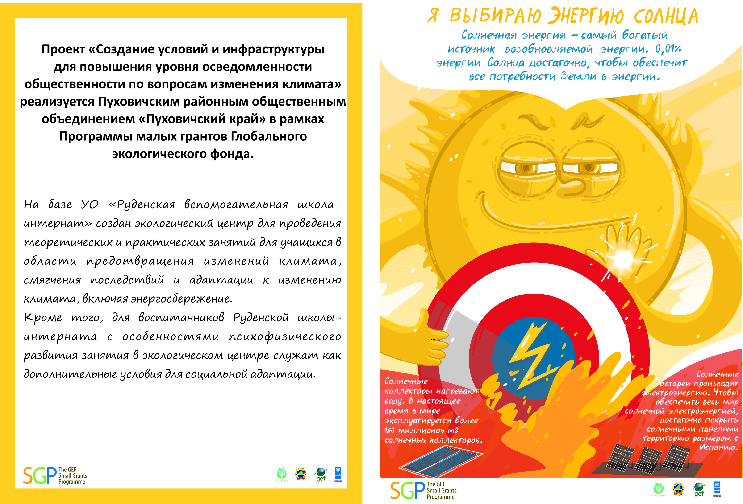 Project BLR/SGP/OP6/Y4/STAR/CC/18/09 - Creating conditions and infrastructure for raising public awareness about the issues of climate change (2018-2020). At present, an environmental information center has been created, equipped with all necessary equipment and is functioning in full for theoretical and practical training for students in the field of mitigating climate change, mitigating consequences and adapting to climate change, including energy conservation on the basis of the educational institution Rudenskaya Auxiliary School boarding school". Teachers have the opportunity to adapt ea...
