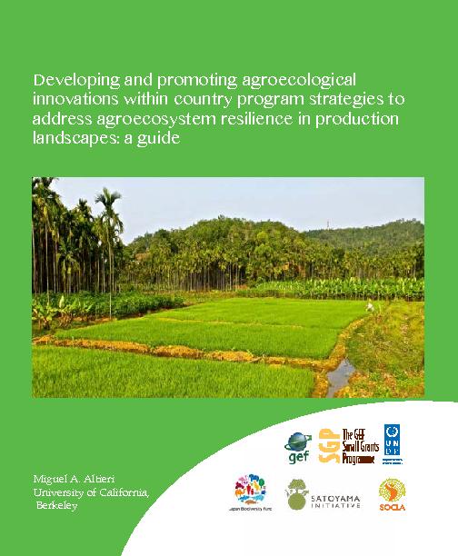 This guide is intended to serve as the basis for the implementation of the Innovative Agro-ecology component of the GEF Small Grants Programme in its 6th Operational phase, and to provide guidance for the agro-ecosystem outcome of the COMDEKS landscape approach. It provides conceptual and methodological elements for developing and promoting agroecological innovations within country strategies to address agroecosystem resilience in specific production landscapes. This guidance note explains basic agroecological concepts, principles and its application in the design and management of biodiverse and resilient farming systems. Building on the COMDEKS landscape approach, the guide strengthens its agroecosystem component to more effectively build the social, economic and ecological resilience of production landscapes.